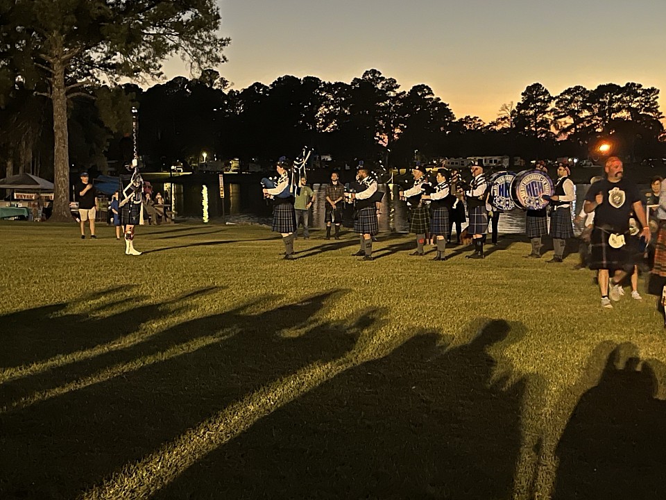 But why did we choose Ocean Springs, MS? The group was formed after attempts by several local Fire Departments to create an Honor Guard Band were shelved due to the expense and difficulty of attracting and retaining experienced players. Coincidently, after Katrina, Bill Muzzy moved into the Ocean Springs area and began looking for other pipers to play with. He was patient, but not successful, as one or two pipers would meet for a while, play some events, and then leave. Meantime, Bill concentrated on Grandfather Mountain and Stone Mountain Highland Games, building up a vast network of teachers and experts, and a tremendous reputation as he did so.